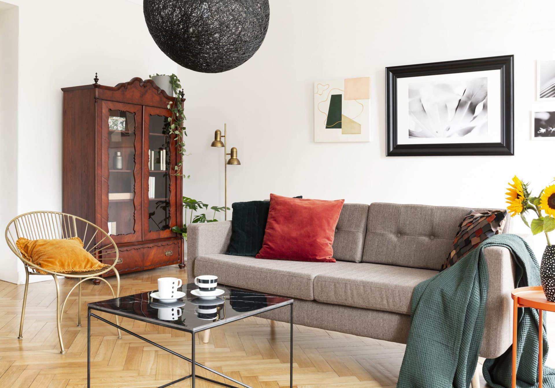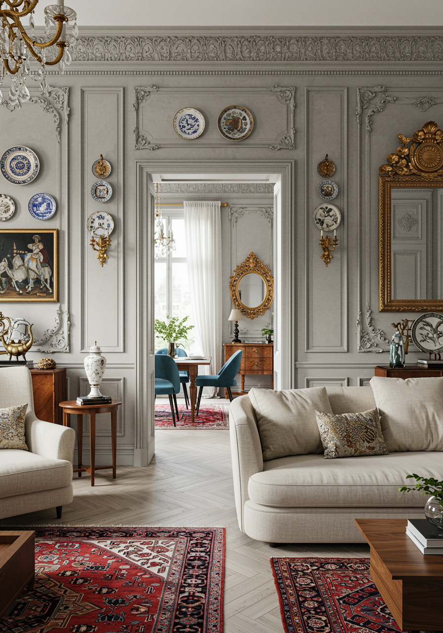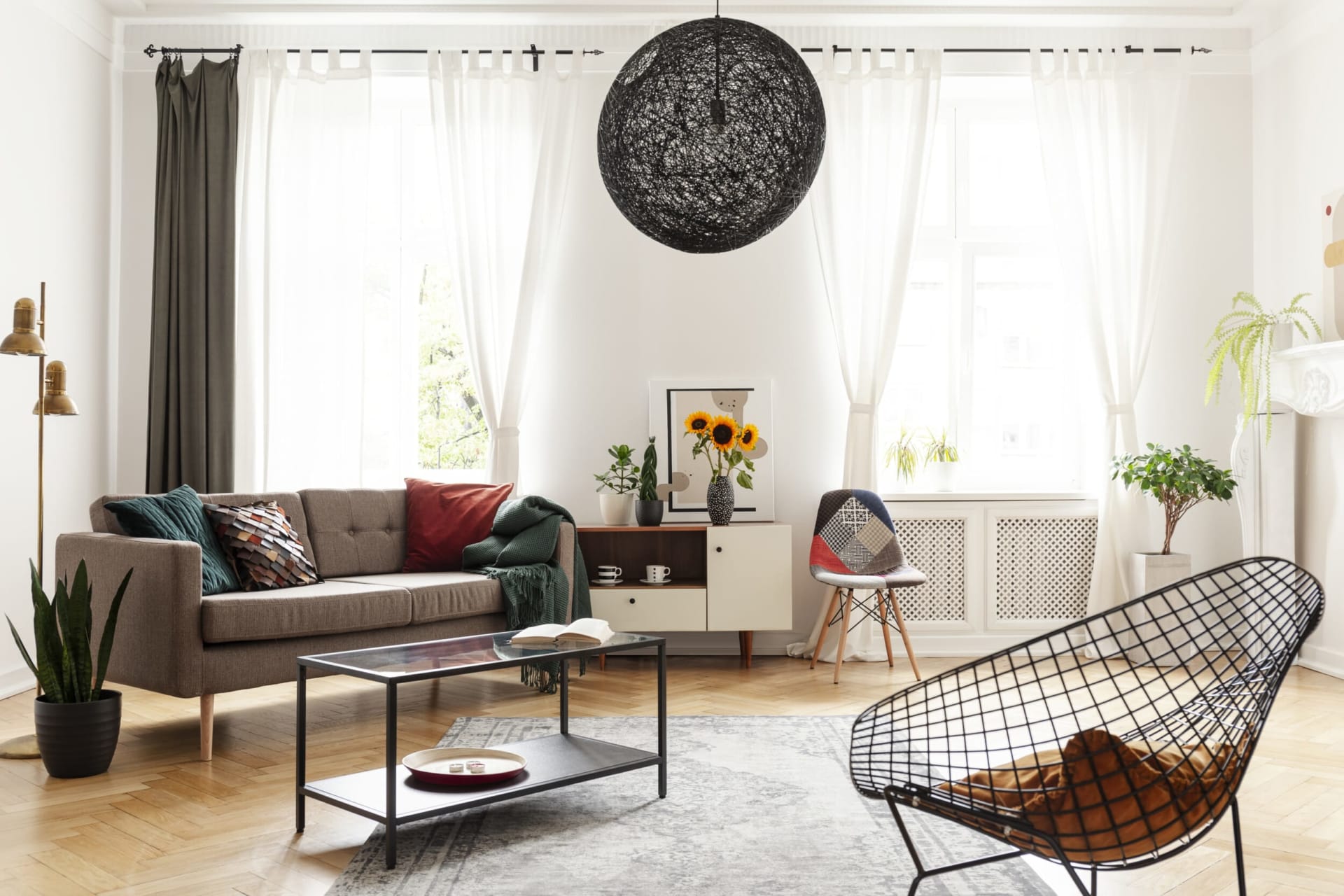 Plus, by keeping more radical statements limited to accessories like throws, art objects, rugs, and decorative pieces, you’ll have a much easier time switching pieces around to find balance to your liking.