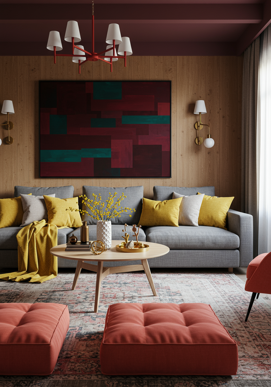 This living room features subtle yet powerful pops of red used on the chandelier and floor cushions, creating a desirable, energetic feel throughout the entirety of the space. The living room is inviting, exciting, and will create a lively environment for entertaining guests, but be careful to not overdo it when thinking of including red in your own space. Certain shades of red can induce feelings of aggression and rage – two emotions you definitely do not want in an entertaining space of your home.