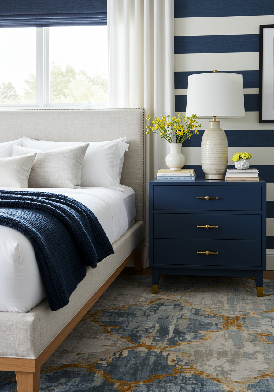 Colors on the blue side of the spectrum, often referred to as ‘cool colors’, are known to create calm and restful spaces. You may think to use blue in a bedroom, bathroom, or study; places where you would want to relax, wind down, and feel a sense of relief while experiencing the space.