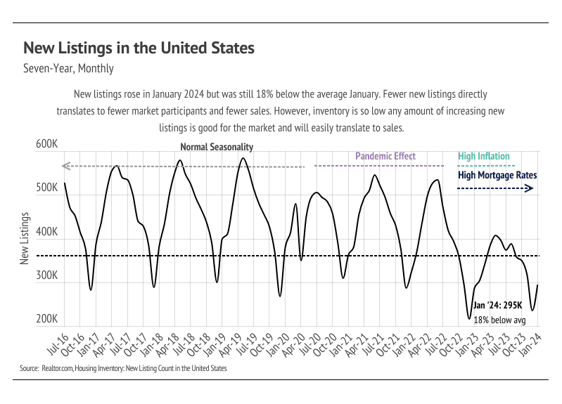 Inventory and new listings increased significantly in the first two months of 2024. With the current low inventory levels, the number of new listings coming to market is a significant predictor of sales. New listings increased 22% month over month, and sales increased 36%. Year over year, inventory is down 1%; however, sales and new listings are up 29% and 19%, respectively. The next three months will be critical to our understanding of the market. More supply will mean a healthier market and a more normal housing market in 2024.