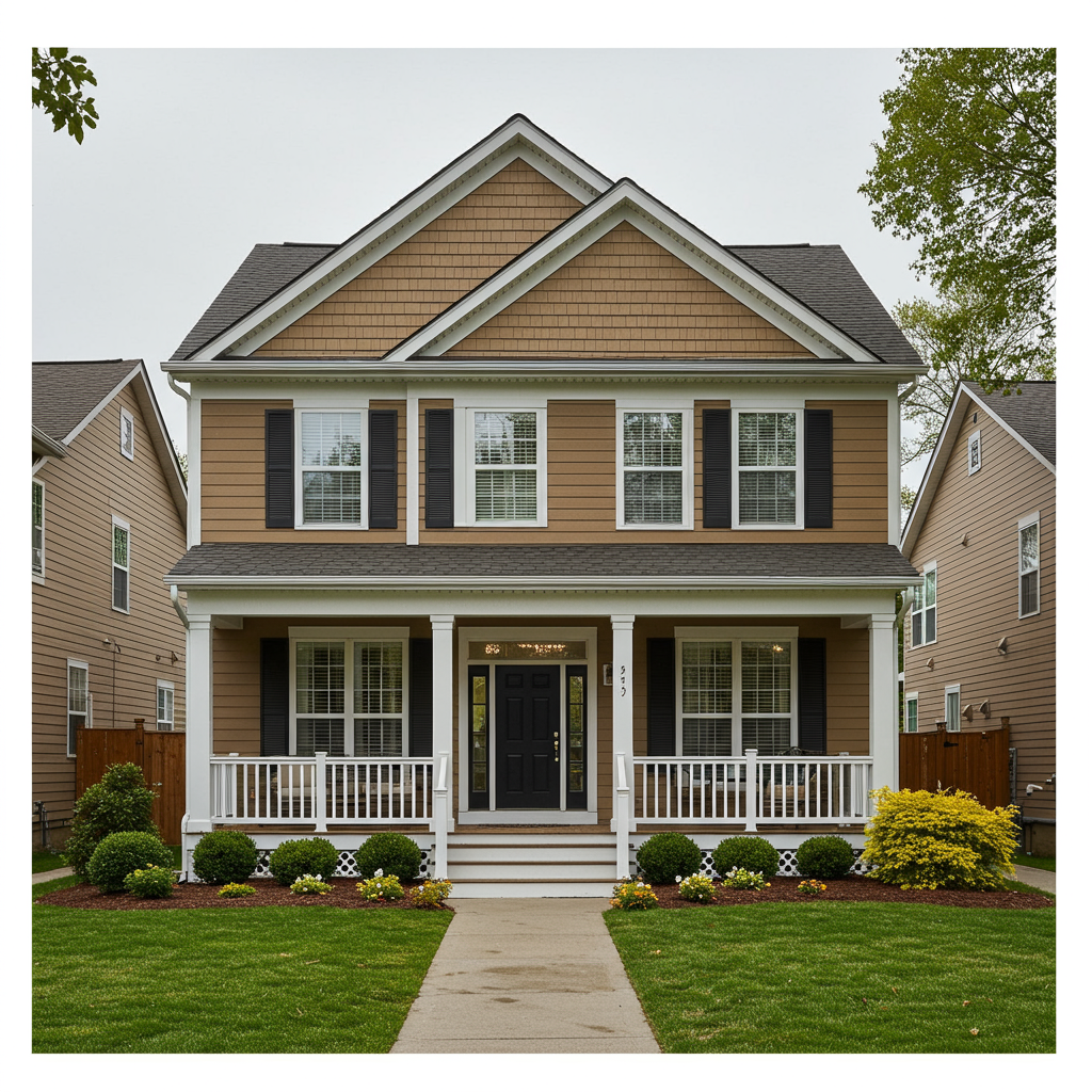 Focus by Glidden is a warm, creamy off-white that transcends exterior design styles. McCollum suggests it works well as a minimalist aesthetic or as a blank canvas for warm or cool accents, suitable for various architectural styles.