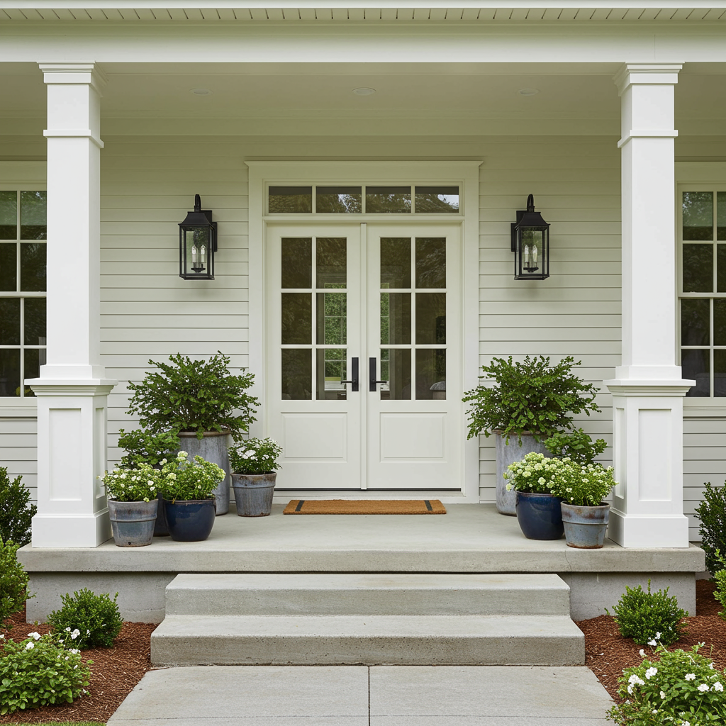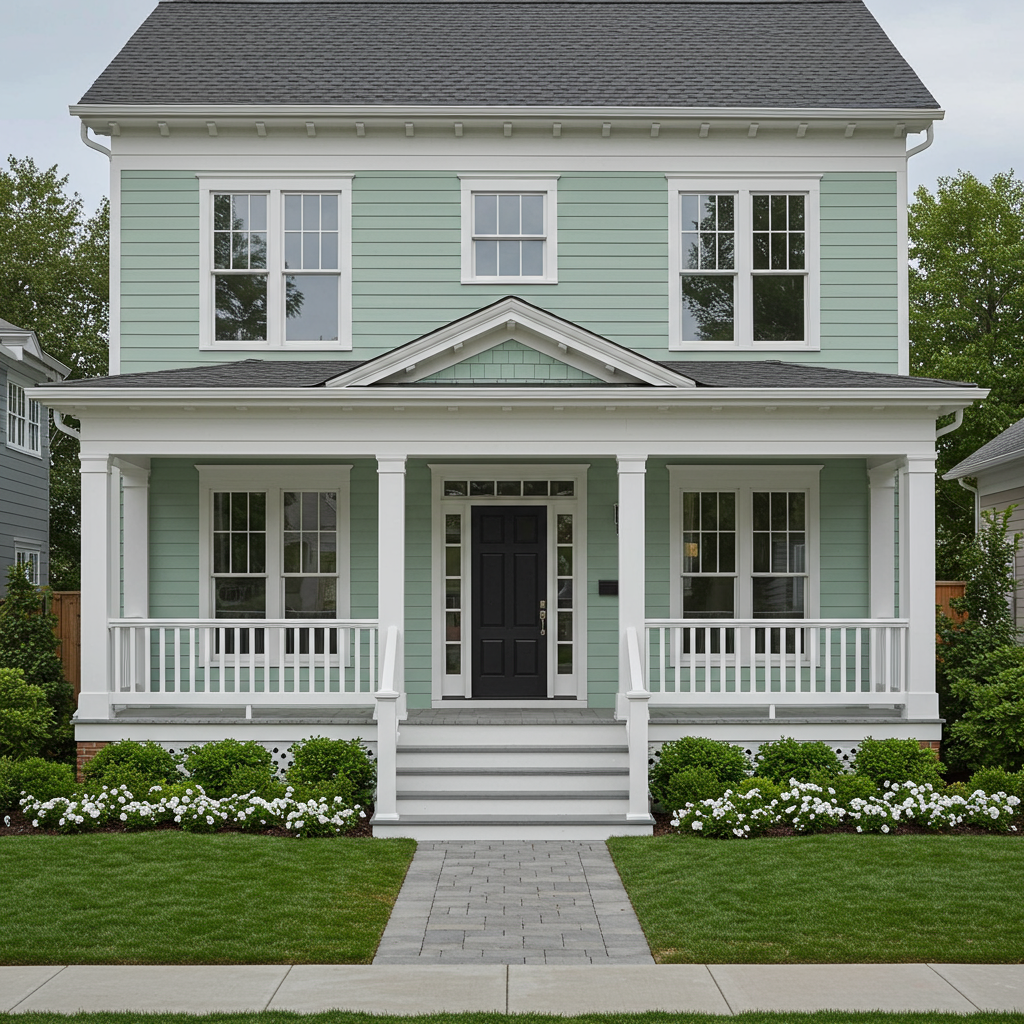 For a splash of color on doors, trim, or porch ceilings, Valspar's Renew Blue, a green-influenced blue, is a beautiful choice. According to Sue Kim, it's a nourishing tone that brings a sense of peace to outdoor spaces.